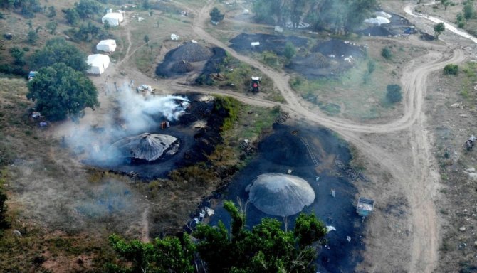 Mangal kömürü üretmek için gece gündüz mesai yapıyorlar