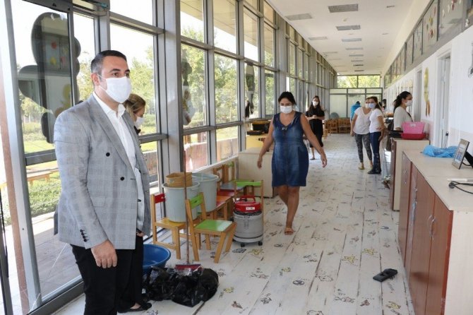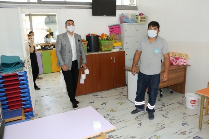 Manisa Büyükşehir Belediyesi Genel Sekreter Yardımcısı Ertuğrul Yıldırım, korona virüs salgını sürecinde eğitime ara verilen çocuk kreşlerinde incelemelerde bulundu. Yıldırım, 31 Ağustos itibariyle Büyükşehir Belediyesine ait üç kreşte 71 öğrenciyle eğitime başlanacağını belirtti.