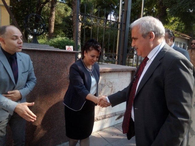Vali Güvençer’i Müdürlüğü ziyaretinde Manisa İl Sağlık Müdürü Dr.Necip Yemenici ve diğer yetkililer karşıladı.