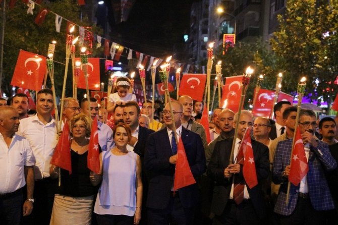 Manisa’da 30 Ağustos Zafer Bayramı kutlamaları düzenlenen fener alayı yürüyüşüyle devam etti. Manisa Büyükşehir Belediye Başkanlığı organizasyonuyla Manisa Sultan Camisi önünde toplanan binlerce vatanda ellerine aldıkları fenerlerle yürüyüşe başladı. Fener alayında Manisa Valisi Mustafa Hakan Güvençer, Manisa Büyükşehir Belediye Başkanı Cengiz Ergün, Manisa İl Emniyet Müdürü Fevzi Bilgiç vatandaşları selamladı. Manisa Büyükşehir Belediyesi Mehter Takımı ve askeri bando takımı da fener alayında marşlarını çaldı. Manisa Cumhuriyet Meydanı’na kadar devam eden yürüyüş sonrası vatandaşlar Emre Altuğ konseri için meydanda toplandı.