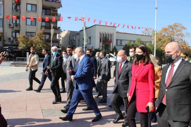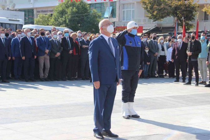 Manisa'da Cumhuriyet Bayramı kutlamaları çelenk sunma töreni ile başladı. Manisa'nın Şehzadeler ilçesindeki Cumhuriyet Meydanında bulunan Atatürk ve Milli Egemenlik Anıtı önünde gerçekleştirilen çelenk sunma törenine Manisa Valisi Yaşar Karadeniz, Manisa Büyükşehir Belediye Başkanı Cengiz Ergün, AK Parti MKYK üyesi ve Manisa Milletvekili Murat Baybatur, AK Parti Manisa Milletvekilleri Tamer Akkal, Semra Kaplan Kıvırcık, AK Parti Manisa İl Başkanı Salih Hızlı, CHP Manisa İl Başkanı Semih Balaban, siyasi partilerin ile ve ilçe başkanları, ilçe kaymakamları, ilçe belediye başkan yardımcıları, askeri erkan, daire müdürleri ve vatandaşlar katıldı.