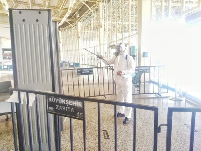 Manisa genelinde korona virüs tedbirlerini etkin bir şekilde gerçekleştiren Manisa Büyükşehir Belediyesi, dezenfeksiyon ve hijyen çalışmalarına aralıksız devam ediyor. Bu kapsamda Manisa Büyükşehir Belediyesi Sağlık İşleri Daire Başkanlığı Haşereyle Mücadele Şube Müdürlüğü ekiplerince il genelinde periyodik olarak gerçekleştirilen dezenfeksiyon uygulamaları yapılıyor. Bu doğrultuda il genelinde oto terminallerde, Manisa Büyükşehir Belediyesi ve MASKİ Genel Müdürlüğünün hizmet birimlerinde, şehir içi toplu taşıma araçlarında ve kamu kurumlarında dezenfeksiyon uygulaması gerçekleştirildi. Manisa Büyükşehir Belediye Başkanı Cengiz Ergün öncülüğünde dezenfeksiyon uygulamalarını titizlikle sürdürdüklerini belirten Sağlık İşleri Dairesi Başkanı Uğur Başkal, çalışmaların planlı ve periyodik olarak sürdüğünü söyledi.