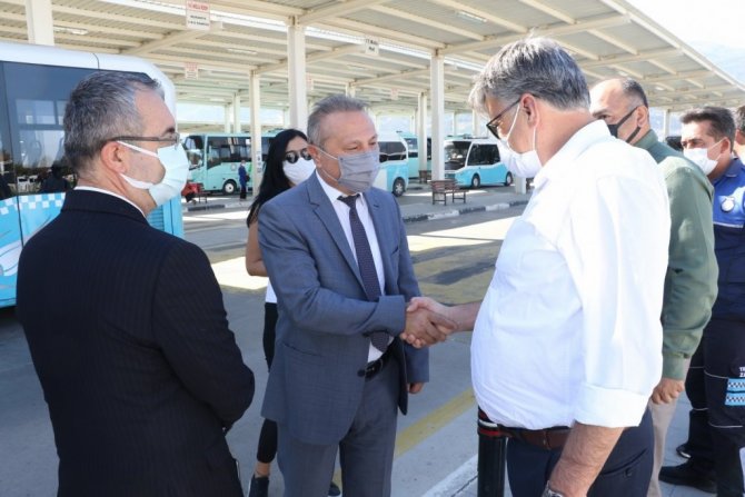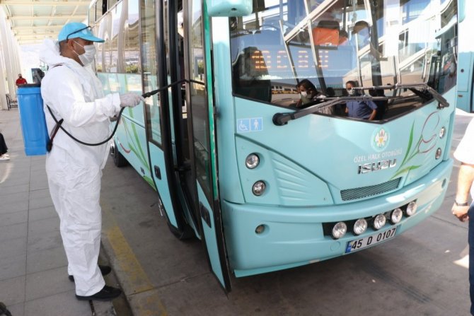 Manisa Büyükşehir Belediyesi, tüm dünyayı etkisi altına alan pandemiyle mücadelesine ara vermeden devam ederken, dezenfeksiyon çalışmalarını da aynı hızıyla sürdürüyor. Manisa Büyükşehir Belediyesi Sağlık İşleri Dairesi ekipleri 6 Eylül 2021 Pazartesi tarihinde başlayacak olan yeni eğitim öğretim dönemi öncesinde toplu kullanım alanlarında ve toplu taşıma araçlarında dezenfeksiyon çalışmasına hız verdi. Sağlık İşleri Dairesi ekipleri Şehirlerarası otobüs terminalinde toplu ulaşım araçlarında dezenfeksiyon çalışması yaptı. Yapılan çalışma sırasında Manisa Büyükşehir Belediyesi Genel Sekreter Yardımcısı Uğur Başkal, Ulaşım Dairesi Başkanı Hüseyin Üstün yer alırken, Manisa S.S.155 Nolu Şehir içi Denetimli Manisa Özel Halk Otobüsleri Motorlu Taşıyıcılar Kooperatifi Başkanı Erdoğan Akatmacı da bulundu.