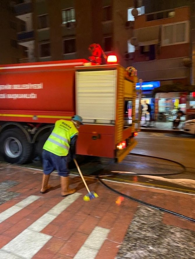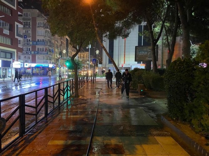 Manisa’da sokaklar korona virüse karşı dezenfekte edildi