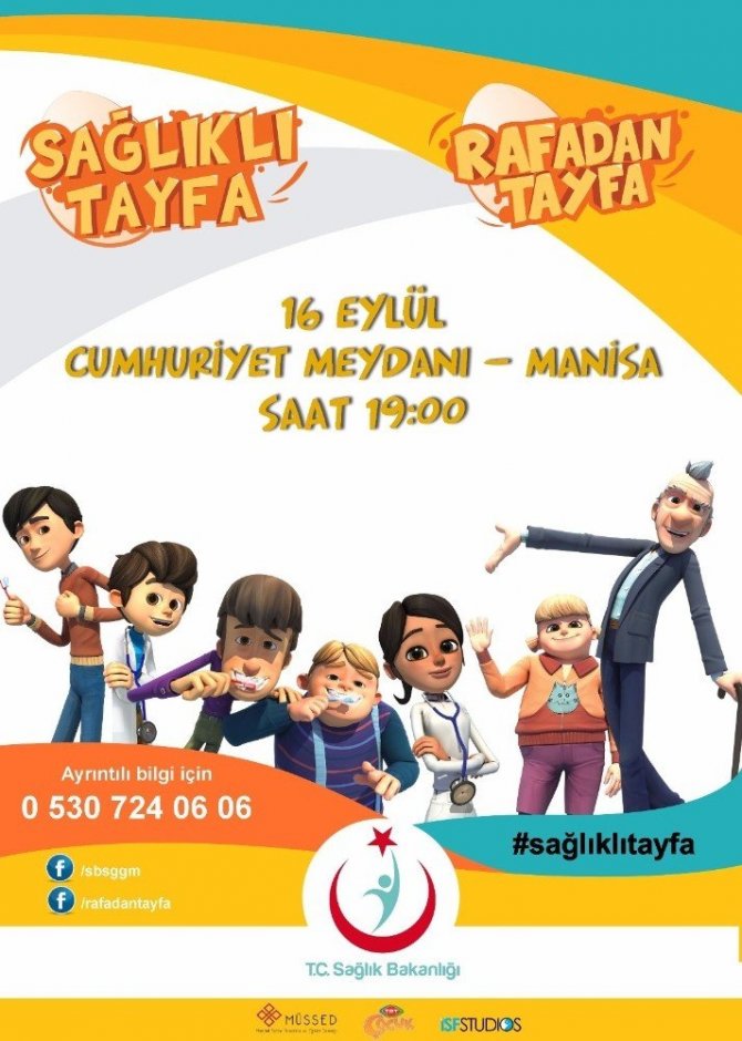 Sağlık Bakanlığı’nın düzenlediği “Sağlıklı Tayfa, Rafadan Tayfa” müzikali 16 Eylül Cumartesi günü Manisalı çocuklarla buluşacak. Bakanlık tarafından obezite ile mücadele kapsamında çocuk ve gençlere y...