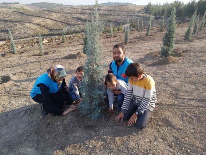 Manisa İl Müftülüğüne bağlı Kur'an kurslarında hafızlık eğitimi gören öğrenciler, hafta sonunda Yuntdağı ağaçlandırma sahasında 100 fidan dikerek geleceğe nefes oldular.