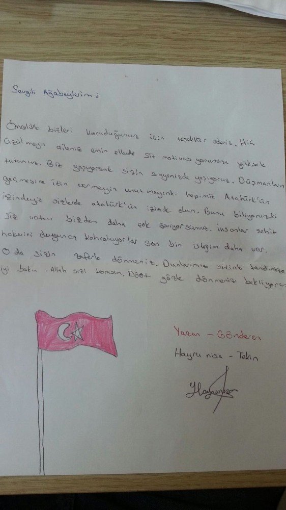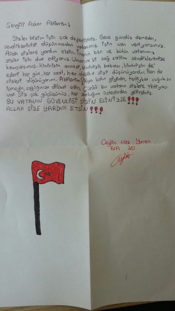 Manisalı öğrenciler sınırda görev yapan askerlere şükran ve minnet duygularını içeren mektuplar yazarak moral verdi. Şehit Ömer Halisdemir Ortaokulunun öğrencileri mektuplarında askerler için sürekli dua ettiklerini belirtirken okulun 7. sınıf öğrencisi Zeynep Sude Ceylan’ın seslendiği ‘Annem beni yetiştirdi’ Alay Marşının videosu da mektuplarla birlikte askerlere ulaştırıldı.