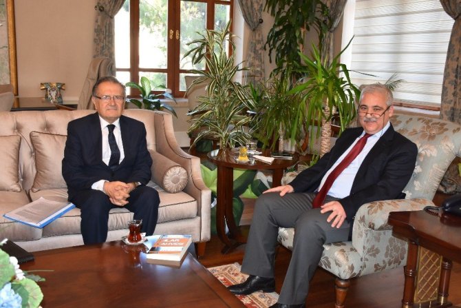 Manisa Valisi Mustafa Hakan Güvençer’i ziyaret eden Manisalı eğitimci yazar Kadir Keskin, 2017 yılında basılan ‘Yalancılar Kahvesi’ adlı kitabını hediye etti.