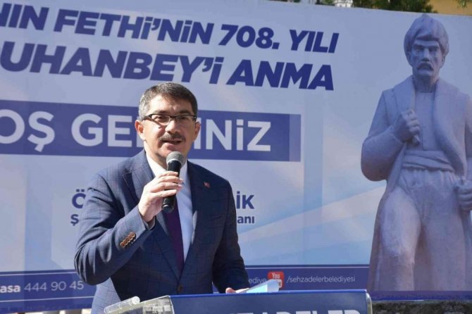 Manisa'nın Fethinin 708. Yılı ve Saruhan Bey'i Anma programında konuşan Şehzadeler Belediye Başkanı Ömer Faruk Çelik "Bize, bu toprakları yurt bırakan, vatan kılan kutlu mirasın sahibi Sultan Alpaslan'dan, Saruhan Bey'e, Saruhan Bey'den Fatih'e, Fatih'ten Atatürk'e kadar cümle atalarımızı ve şühedayı minnet ve şükranla anıyorum" dedi.