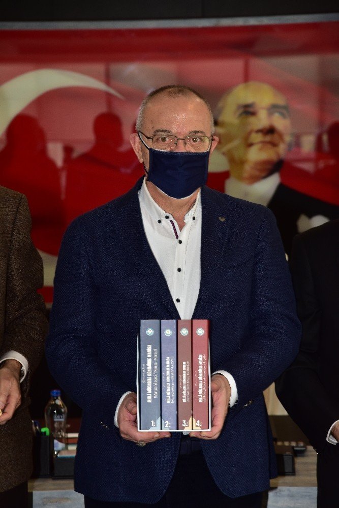 Hazırlanan "Yüzüncü yılında milli mücadele döneminde Manisa" isimli eserin o dönemdeki Manisa'nın durumunu gözler önüne serdiğini ifade eden Başkan Ergün, "Kitabımızın içeriğinde işgal güçlerinin gazeteleri ve Türk gazeteleri ile birlikte çeşitli bilgi ve belgeler yer almaktadır. Bu kitap, tarihimize ışık tutan altın değerinde bir bilgi bankası haline getirildi. Birbirinden kıymetli hocalarımızın uzun ve yorucu çalışmasının sonucunda ortaya çıkan bu önemli kitap, gerek Manisa ile ilgili araştırma konusu olan akademisyenlere gerekse de Manisa'nın yakın tarihi ile ilgili bilgi sahibi olmak isteyen her bir bireye önemli bir kaynak olacaktır. Bu kıymetli esere katkı vermiş olmaktan dolayı büyük mutluluk duyduğumu ifade etmek istiyorum. Manisa'mızın geçmişine ışık tutacağına yürekten inandığım ve gelecek kuşaklara aidiyet duygusunun sağlanmasında bu güzel esere hayat veren herkese, Manisalı hemşerilerim adına teşekkürlerimi sunuyorum. Bu noktada hazırladığımız listede Türkiye'deki belli kütüphanelere belli merkezlere, üniversitelere dağıtım planlamasını da Azmi Bey sizlerle paylaşmıştır. Dağıtımını da en kısa sürede yapma noktasında olacağız" ifadelerini kullandı.