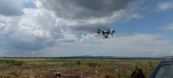 Manyas’ta drone ile sivrisineklere karşı zirai ilaçlama