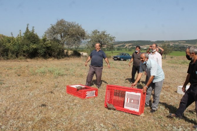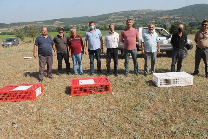Yozgat keklik üretme çiftliğinden getirilen kınalı keklikler Manyas Gölü Avcılar ve Atıcılar Derneği üyeleri tarafından doğaya salındı.