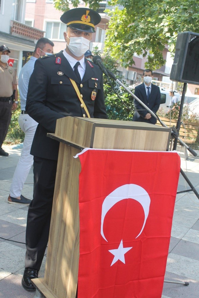 İlçe Jandarma Komutanı Ütğm. Mevlüd Taş günün anlam ve önemini belirten konuşmasında "Biz Türkler tarih boyunca hürriyet ve istiklalin timsali olmuş bir milletiz. İşte bunun için bugün Türk Milletinin Zafer günüdür. Bugün Türk ulusunun kendisine esir etmek isteyen istilacı güçlere karşı kadınıyla, çocuğuyla, ordusuyla ulusal benliğini kurtardığı ve zafer destanı yazdığı gündür. " Konuşma sonrası Cumhurbaşkanı Recep tayyip Erdoğan'ın bayram mesajı okunurken, tören öğrencilerin okuduğu şiirlerle sona erdi.