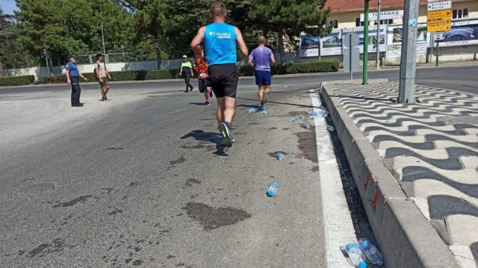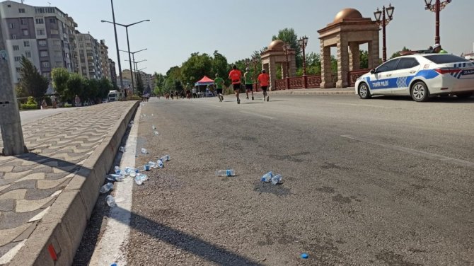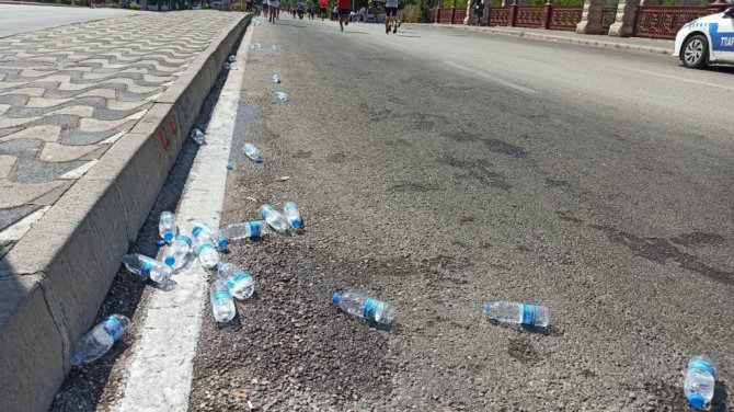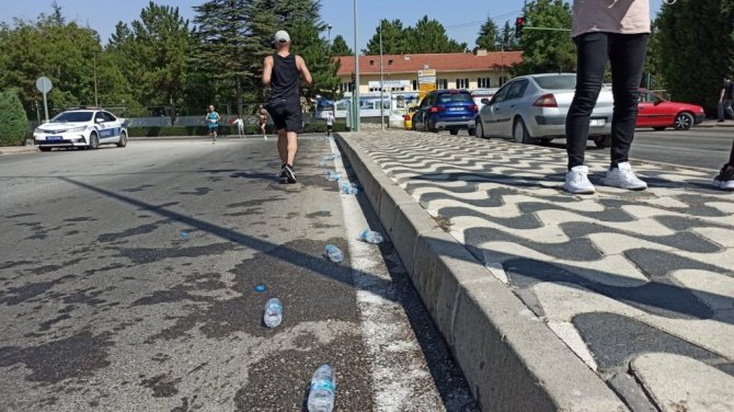 Eskişehir'de düzenlenen ve binlerce sporcunun katıldığı maratonda, ücretsiz dağıtılan suların boş pet şişeleri kulvar boyunca atılınca kötü görüntülere neden oldu.