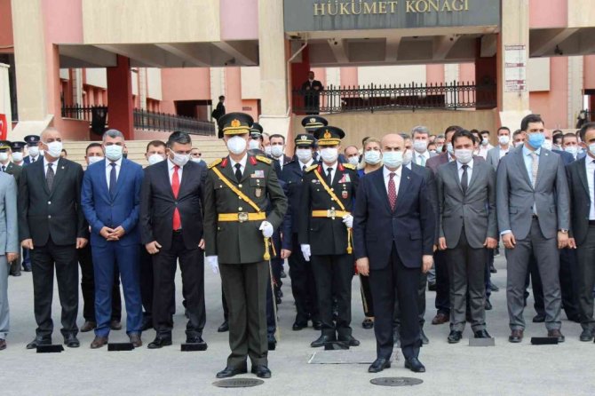Hükümet Konağı Meydanı Atatürk Anıtı önünde düzenlenen törene; Vali Mahmut Demirtaş, 70. Mekanize Piyade Tugay Komutanı Tuğgeneral Burhan Aktaş, Cumhuriyet Başsavcısı Aydın Turhan, İl Jandarma Komutanı Tuğgeneral Coşkun Sel, Emniyet Müdürü Mahmut Karabulut, il protokolü, siyasi parti temsilcileri, STK'lar, kurum müdürleri, gaziler, öğretmenler ve öğrenciler katıldı. Mardin Valiliği, Garnizon Komutanlığı ve Büyükşehir Belediye Başkanlığının çelenklerinin Atatürk Anıtı'na sunulması ile başlayan tören, saygı duruşu, İstiklal Marşı'nın okunması ve ay yıldızlı bayrağın göndere çekilmesi ile devam etti.