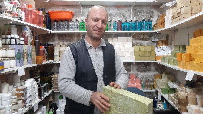 Mardin'de vatandaşlar kış aylarında kuruyan ciltlerini yumuşatmak için en çok badem sabununu tercih ediyor.
