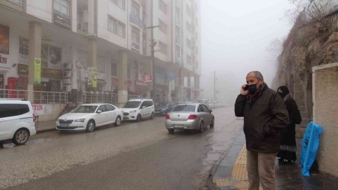 Mardin'in Artuklu ilçesinde sabah saatlerinden beri etkili olan yoğun sis, görüş mesafesini 5 metrenin altına düşürdü. Sürücüler, farlarını ve dörtlülerini yakıp hızlarını düşürerek ilerledi. Yoğun sis etkisini sürdürmeye devam ediyor.