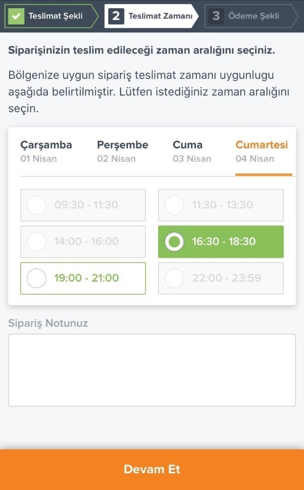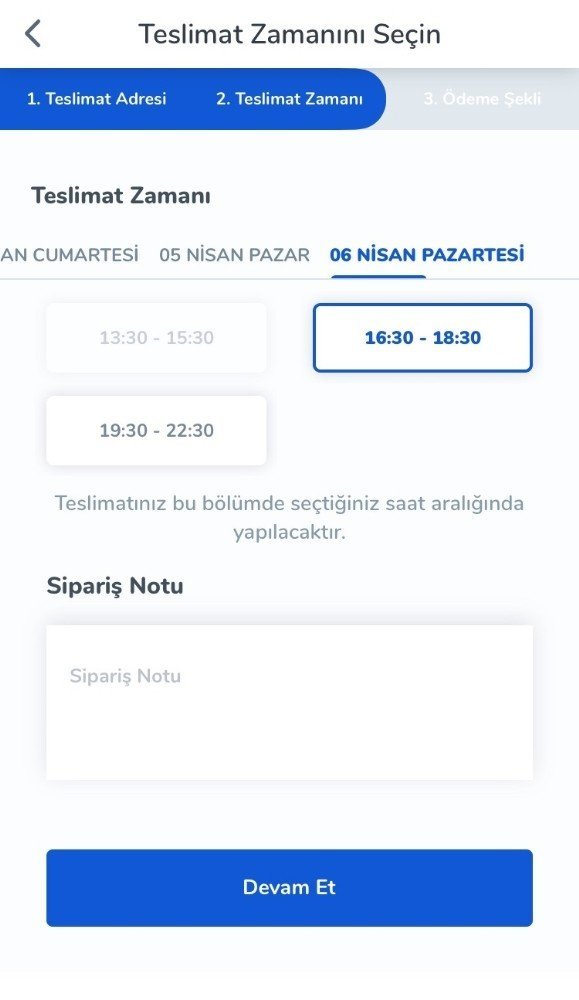 Deneme amaçlı bugün için Migros sanalmarket ve CarrefourSa onlinemarket üzerinden yapılan bir alışverişte, en yakın teslim tarihinin 4 Nisan Cumartesi ile 6 Nisan Pazartesi günü olarak verildiği test ediliyor.