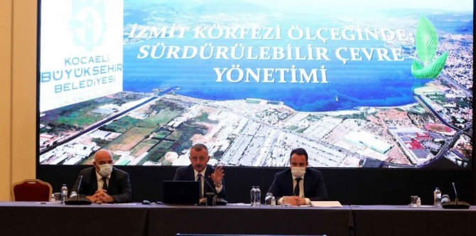 Marmara Belediyeler Birliği Başkanı olarak yaptığı bu değerlendirmelerin ardından İzmit Körfezi Ölçeğinde Sürdürülebilir Çevre Yönetimi başlıklı sunumuna geçen Kocaeli Büyükşehir Belediye Başkanı Tahir Büyükakın, "35 tane liman, iskele ve platformun olduğu, on bir bin ile on iki bin gemi hareketinin olduğu İzmit Körfezi'nde yaptığımız çalışmalardan bahsetmek istiyorum. Körfez'in su akıntısı, yüzey suyu 10-12 günde Körfezin güney sahillerinden kuzeyine doğru devri daim yapar. Üste 10-15 metre aralığında az tuzlu Karadeniz suyu, altta ise daha tuzlu Akdeniz suyu yer alır. Büyükşehir Belediyesi 2004 yılında il sınırlarında İstanbul'la birlikte Büyükşehir Belediyesi oldu. 2006 yılında Büyükşehir Belediyemiz, bakanlıktan denizlerin üzerinde denetim yetkisi çalışmaları yetkisini aldı. İzmit Körfezi'nin su kalitesini izlenme çalışmalarına o tarih itibariyle başlandı. Deniz uçağı ile denetimler yaptık. Gemilerden atık alınması ve deniz süpürgeleri hizmeti vermeye 2008 yılında başladık. Başlattığımız çalışmalar sayesinde Karamürsel sahilinde mavi bayrak aldık" dedi.