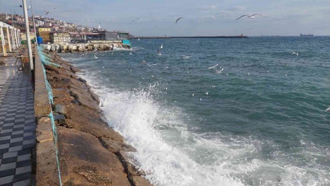 Marmara Denizi'nde etkili olan lodos sebebiyle çok sayıda büyük gemi Tekirdağ kıyılarına demirlerken, balıkçılar da denize açılamadı.