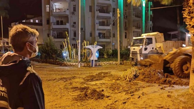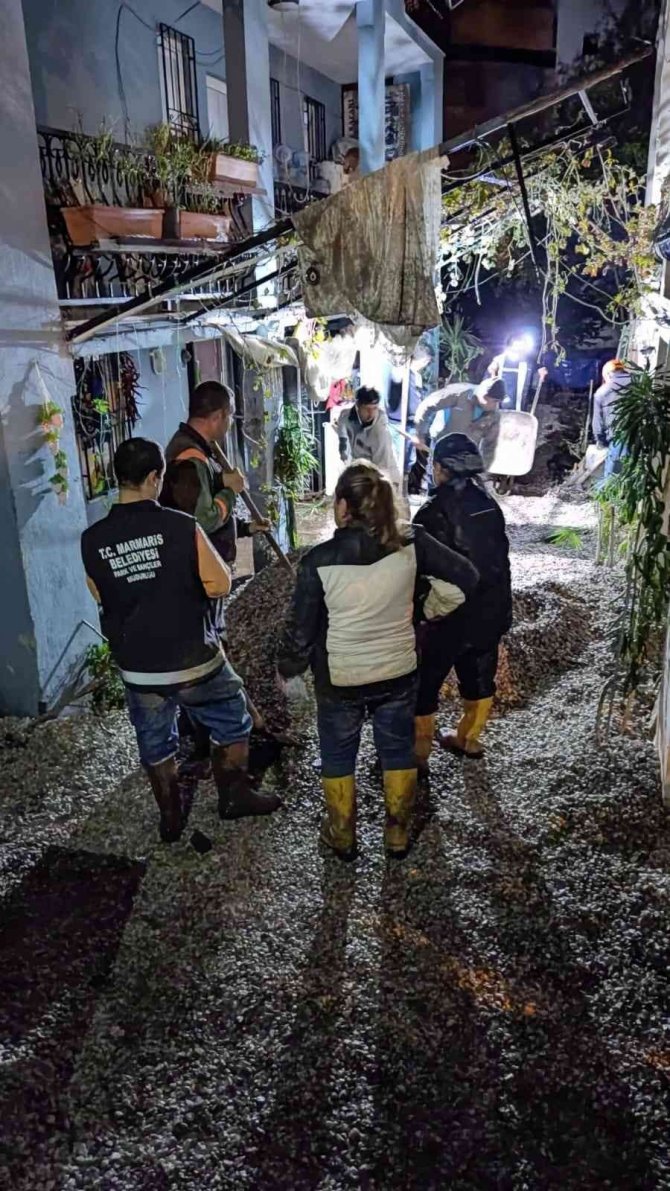Muğla'nın Marmaris ilçesinde geçtiğimiz hafta son etkili olan sağanak yağış hayatı olumsuz etkiledi. Metrekareye 145 kilogram yağışın düştüğü ilçede yağışla birlikte Marmaris Belediyesi ekipleri teyakkuza geçti. Sağanak yağış nedeni ile derelerin taşması ardından cadde ve sokakların sular altında kaldığı, ev ev işyerlerinin zemin kartlarının balçıklı çamurun bastığı İçmeler Mahallesi'nde yağışların devam etmesi durumunda alınacak tedbirler kapsamında çalışmalar sürüyor. Belediye Başkanı Mehmet Oktay ve ekibi gece saatlerinde selden zarar gören alanlardaki çalışmaları yerinde inceledi. Gerçekleştirilen çalışmalar hakkında bilgi alan Başkan Oktay, belediye olarak her zaman vatandaşların yanında olduklarını ifade etti.