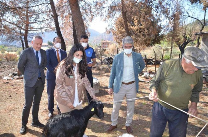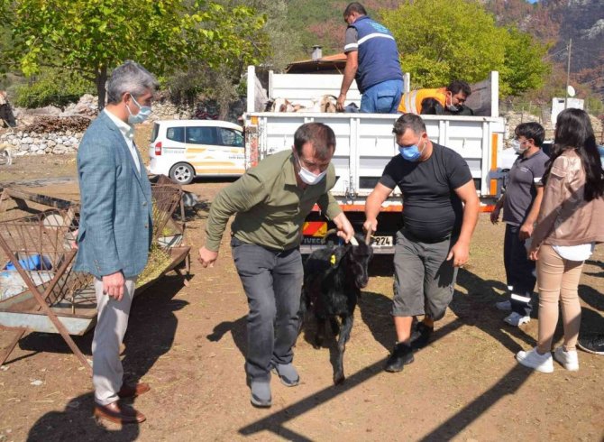 Marmaris Belediyesi, yangının yaralarını sarmaya devam ediyor. Marmaris yangınında küçükbaş hayvanları telef olan kırsal mahallelerde yaşayan vatandaşlara 257 adet keçi teslim edildi.