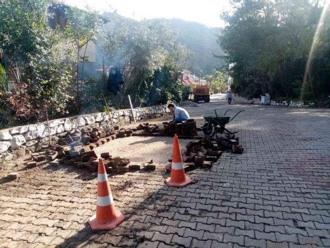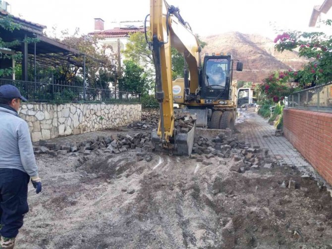 Sel bölgesi İçmeler'de yol, altyapı ve üstyapıyla ilgili çalışmalar yürüten ekipler bozulan noktalarda tamirat gerçekleştiriyor. Menderes Caddesi, Namık Kemal Caddesi ve ara sokaklarda parke sökümü ve tamir yapan ekipler, Dereözü'nde dere ve kanalların açılmasıyla ilgili çalışmaya devam ediyor. Gökbel Camisi bahçesinde yağmur nedeniyle göçen taş duvarın tamirine başlayan Fen işleri çalışanları ayrıca Org. Mustafa Muğlalı Caddesi, Yat Limanı, Beldibi Adnan Menderes Caddesi'nde yol ve karo tamiratına başladı.