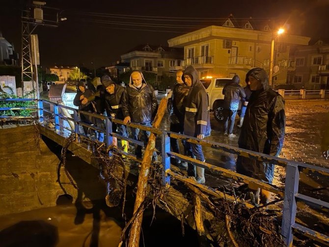 Marmaris'te etkili olan sağanak yağış hayatı olumsuz etkiledi. Özellikle geçtiğimiz yaz yanan tepelerden inen sular İçmeler ve çevre mahallelerde su baskınlarına yol açtı. Yağmurun etkili olmaya başlamasıyla harekete geçen ekipler gece boyunca sorunlara müdahale etti. Belediye Başkanı Mehmet Oktay da ekibiyle birlikte sahadaydı.