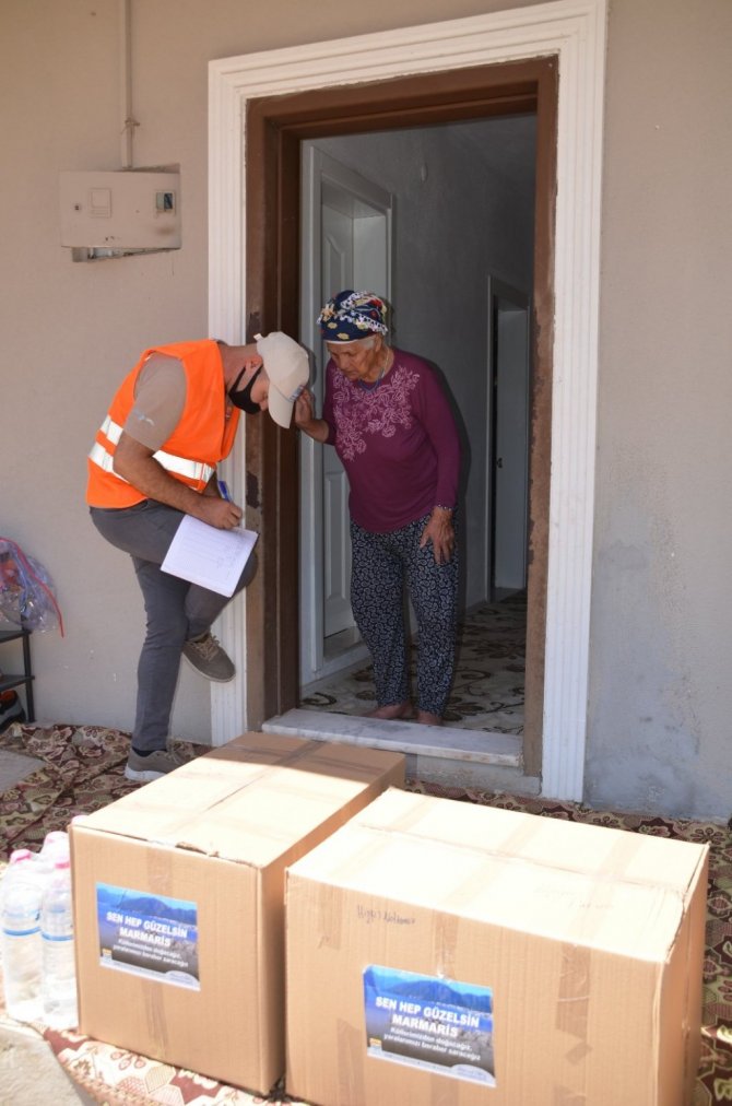 Marmaris Belediyesi, yangın mağduru vatandaşlara yardımlar yapılmaya devam ediyor.