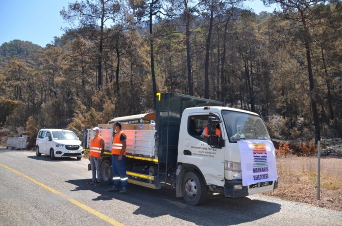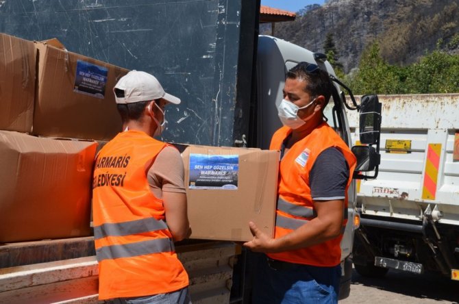 Marmaris Belediyesi, yangın mağduru vatandaşlara yardımlar yapmaya devam ediyor.