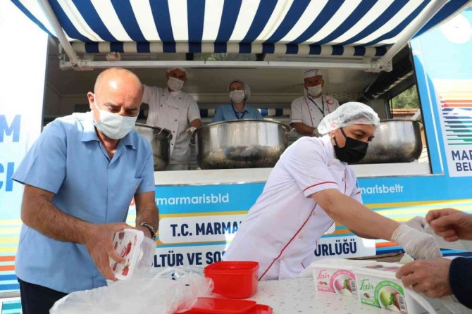 Marmaris Belediye Başkanı Mehmet Oktay da ramazanın ilk günü yemek dağıtımına katılarak vatandaşlarla bir araya geldi. Yemeklerin başına geçerek dağıtım yapan Oktay, "Her yıl olduğu gibi bu Ramazan ayında da paylaşmanın mutluluğu içindeyiz. Huzurevimizin mutfağında pişirilen 3 çeşit yemeği her akşam vatandaşlarımıza ikram ediyoruz. Ramazan'ın ruhu olan dayanışmanın ve birlikteliğin huzurunu hep beraber yaşıyoruz" ifadesini kullandı.