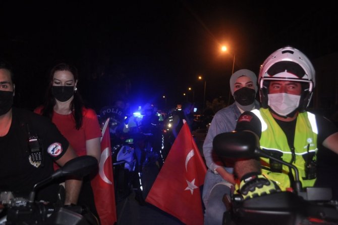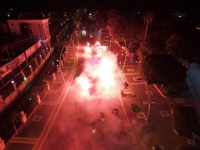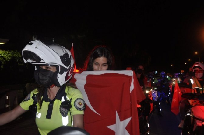 Muğla'nın Marmaris ilçesinde İlçe Emniyet Müdürlüğü'ne bağlı motorize ve devriye polis ekipleri 19 Mayıs Atatürk'ü Anma, Gençlik ve Spor Bayramı kapsamında kortej düzenledi. Meşaleler ve sirenler eşliğinde düzenlenen korteje vatandaşlar pencere ve balkonlarına çıkarak alkışlarla destek verdi.