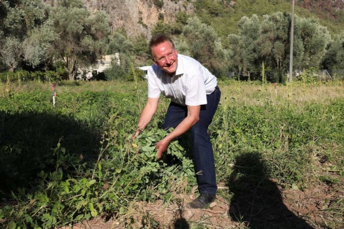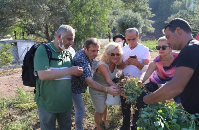Marmaris’e gelen Alman heyet yer fıstığı topladı
