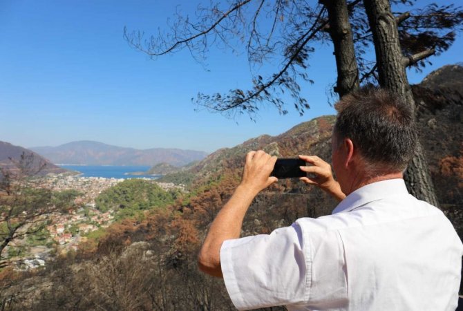 Marmaris ile Almanya'nın Fürth kentinin kardeş şehir olmasının 25. yılı nedeniyle Almanya'dan bir heyet Marmaris'e geldi. Dün Marmaris Belediye Başkanı Mehmet Oktay ile birlikte 25. Yıl dostluk ormanının ilk fidanlarını diken Fürth Belediye Başkanı Thomas Jung ve beraberindekiler bugün de yanan alanları ve kırsal mahalleleri gezdi.