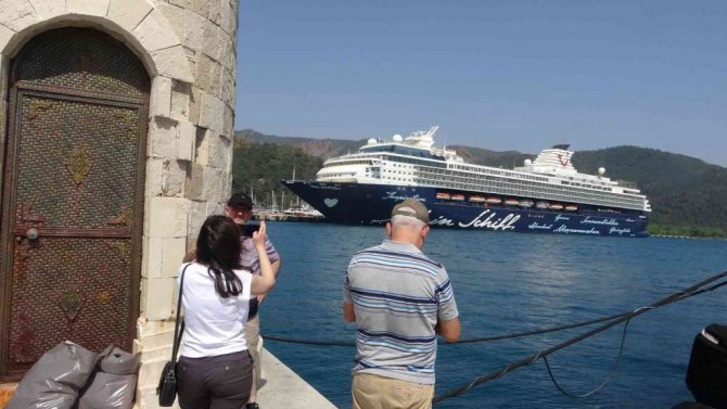 Muğla'nın Marmaris ilçesi Gümrüklü Limanı'na sabah saatlerinde demir atan Meine Schiff Herz isimli dev yolcu gemisi esnafa can suyu oldu.