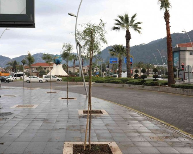 Yaklaşık iki yıl önce ilçede ağaçlandırma seferberliği başlatan Marmaris Belediyesi, yollarda ve kaldırımlarda ağaç dikimine devam ediyor.