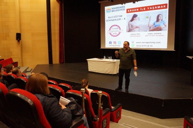 Aile Eğitimi Seminerleri kapsamında Marmaris’te dördüncüsü gerçekleştirilen “Ergenle Yaşamak” başlıklı seminerde Aile ve Çift Terapisti Şamil Saribaş ve Psikoterapist Cengiz İpek’in sunumuyla katılımcılarla buluştu. Seminerde, çocukluk, ergenlik, ergenlikte okul, ergenlikte arkadaşlıklar, ergen ve ailesi, ergen ve geleceği, ergenlikte sorun davranışlar, ergenin ebeveyni olmak başlıklarının yanında katılımcıların soruları cevaplandırıldı.