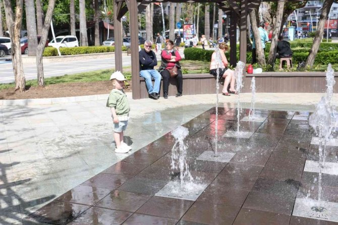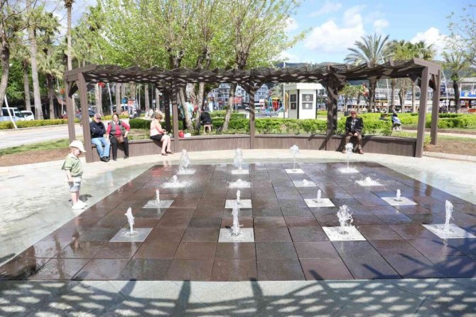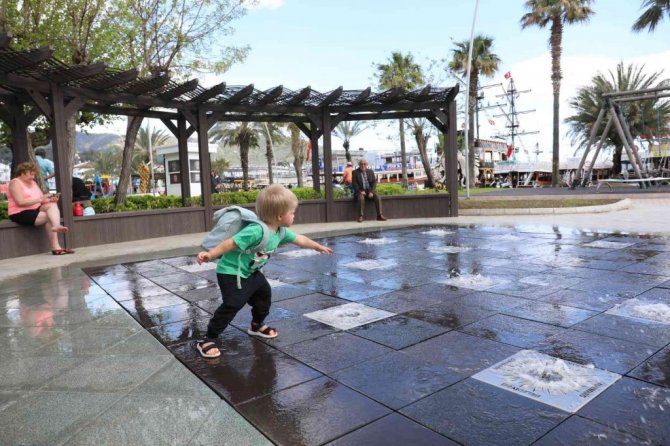 Marmaris’te çocukların yeni eğlencesi kuru fıskiye havuzu oldu