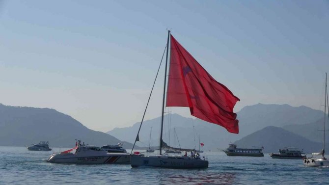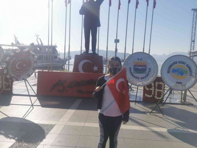Denizde tur tekneleri ve yelkenliler dev bayraklar ile Atatürk anıtının önünden marşlar eşliğinde geçerken, Marmaris'te hava taşımacılığı yapan bir helikopter anıt ve deniz üzerinden uçtu.
