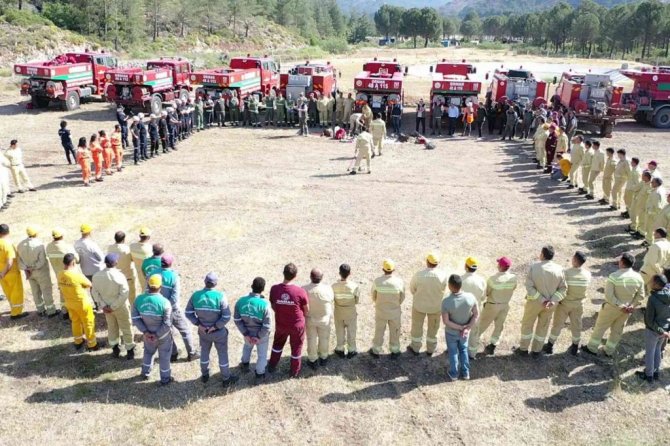 Geçtiğimiz yaz çıkan orman yangınlarında 9 bin 52 hektar ormanlık alan yanan Marmaris'te orman ekipleri ve gönüllü vatandaşlardan oluşan saha ekipleri gerçeği aratmayacak bir tatbikat yaptı. Marmaris Orman İşletme Müdürlüğü ve Datça Orman İşletme Müdürlüğü ekipleri ile her yaz sezonu başında orman yangınlarında zamanında ve doğru müdahaleyi yapmak amacı ile yapılan yangın tatbikatı ve eğitimine 11 Arazöz, 4 su tankeri, 5 ilk müdahele aracı, 1 helikopter ,150 personel ve 70 eğitim almış Marmaris ve Datça'dan gelen orman yangın gönüllüsü katıldı. Muğla Orman Bölge Müdürü Yasin Yaprak ile birlikte Marmaris Orman İşletme Müdürü Akın Ünler ve Datça Orman şefleri tatbikat ve eğitim alanında hazır bulundular.