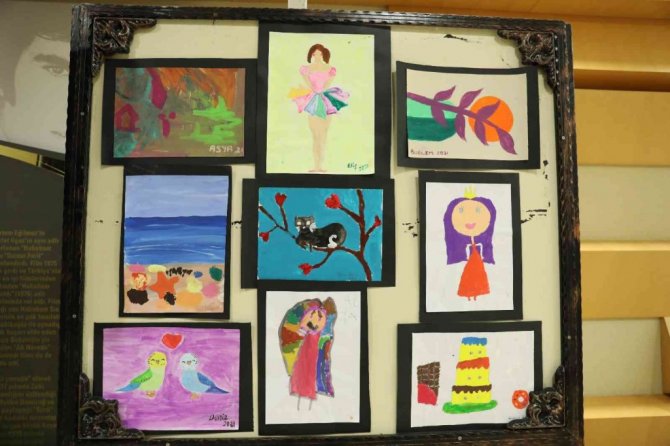 Yaşları 6 ila 12 arasında değişen 32 çocuğun yaptığı resimlerden oluşan "Çoçuk Gözüyle" isimli sergi Armutalan Kültür Merkezi'nde açıldı.