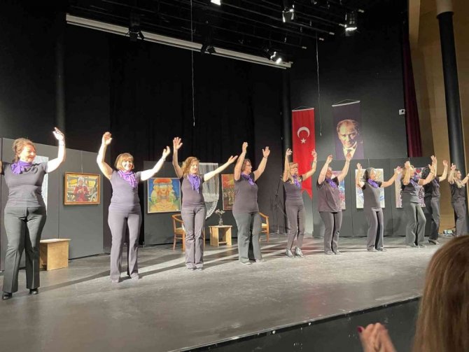 Yaşamını Marmaris'te sürdüren Türk tiyatrosunun önemli isimlerinden Selma Sonat'ın yönetmenliğini yaptığı oyunda rol alan Marmarisli kadınlar, farklı farklı karakterlerin gözünden kadınların yaşadığı sorunları hatırlattı.