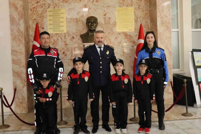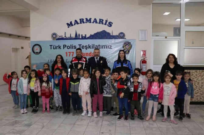 Marmaris İlçe Emniyet Müdür V. Oktay Kapsız İlçe Emniyet merkezinde protokol ve anaokulundan gelen minik ziyaretçilerini kabul etti.