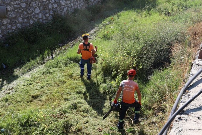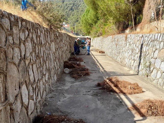 Orman yangınlarının ardından artan sel riskine karşı Marmaris Belediyesi Temizlik İşleri Müdürlüğü ile Park ve Bahçeler Müdürlüğü geniş kapsamlı çalışma başlattı. Dere yatakları, menfez, ızgara ve tahliye kanalları gibi yağmur suyunun tahliyesinde önem arz eden her yer temizleniyor.