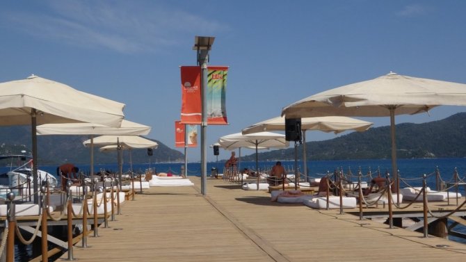 Marmaris’te yerli ve yabancı turistlerin deniz keyfi