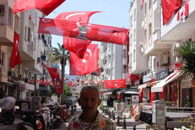 Kafe işletmecisi Özlem Arıkan " Salih abimiz yıllardır bizlere örnek oluyor, kendi adıma çok gurur duyduğumu belirtmek istiyorum gelen turistler dahil herkes bizlerin bayrağımıza marşlarımıza olan tutkumuzu görsün istiyoruz. İşyerlerimizi bayrağımız ile süsledik bizler milliyetçi vatanımızı seven insanlarız inşallah var olur " şeklinde konuştu.