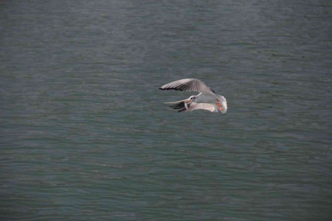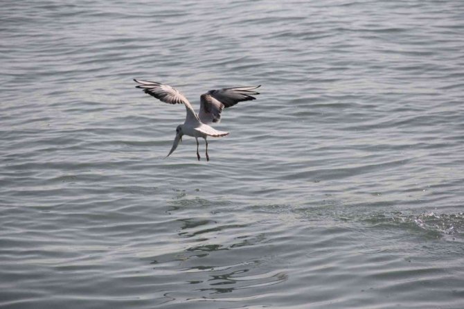 Balığı su içerisine dalarak avlayan martıyı, arkasından balığı kapmak isteyen diğer martıların da kovalaması ilginç görüntüler oluşturdu.