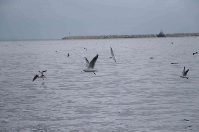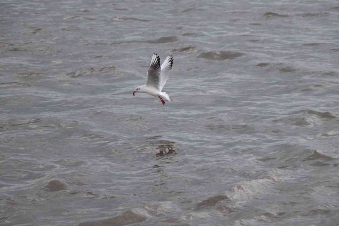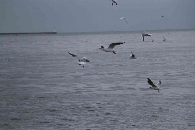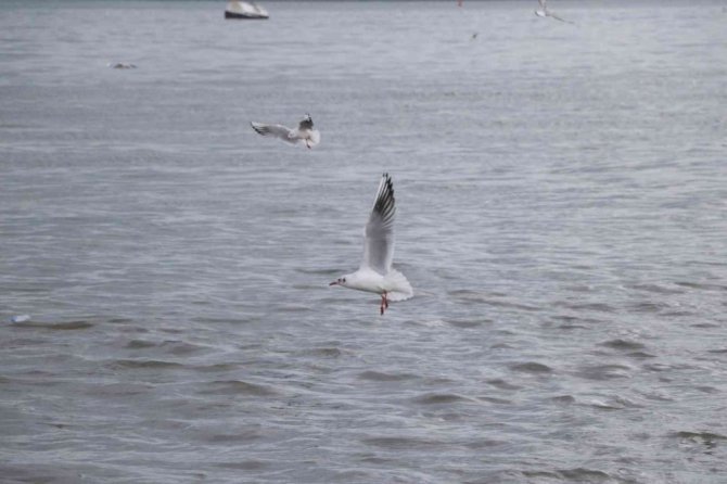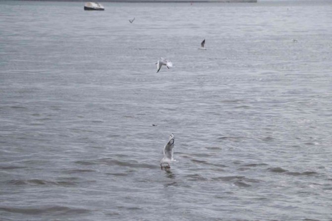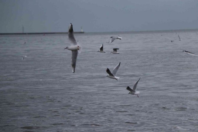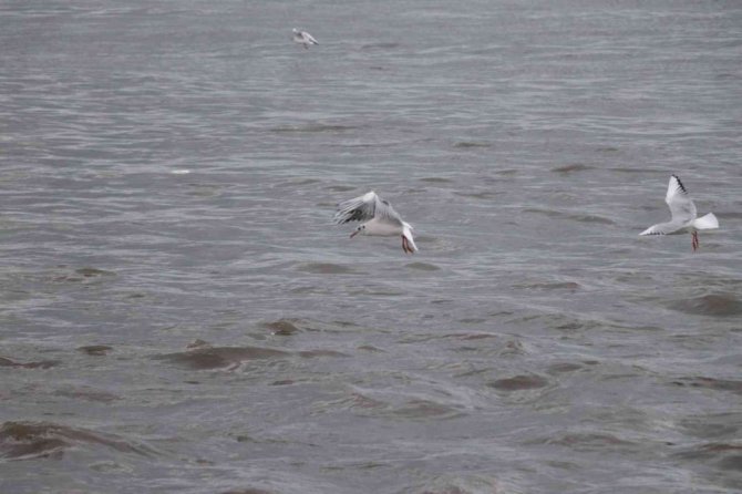 Hava şartlarının kötü olmasından dolayı karaya konuşlanan martılar, burada görsel şölen oluşturuyorlar. Zaman zaman bulundukları yerden havalanıp uçan martılar, adeta havada dans ederken, ilginç görüntüler sunuyorlar.
