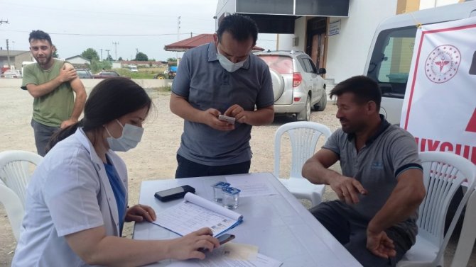 'Mavi" kategoride bulunan Samsun'un Alaçam ilçesinde sanayi sitesinde Kovid-19 aşı çalışması yapıldı.