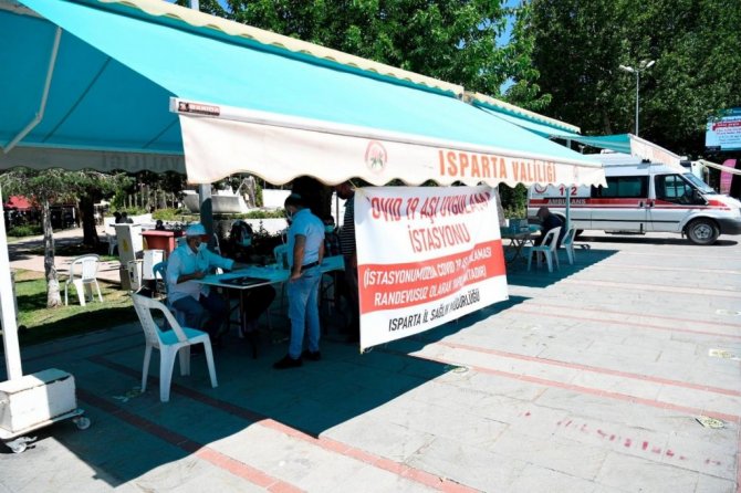 Isparta Valiliği önünde uzun süreden beri faaliyetlerine devam eden mobil aşı istasyonunda vatandaşlara randevusuz olarak aşı hizmeti verilmeye devam ediyor. Mobil istasyonlar dışında kamu, özel ve üniversite hastaneleri ile aile hekimliklerinde ise randevulu aşılama hizmeti veriliyor.